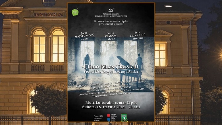 U Multikulturalnom centru u subotu, 18. travnja s početkom u 20 sati započinje 14. koncertna sezona u Lipiku, a otvorenje donosi poseban glazbeni doživljaj koji pomiče granice klasičnog koncerta. Prvi nastup u novoj sezoni pripast će triju Ethno Blues Classical.