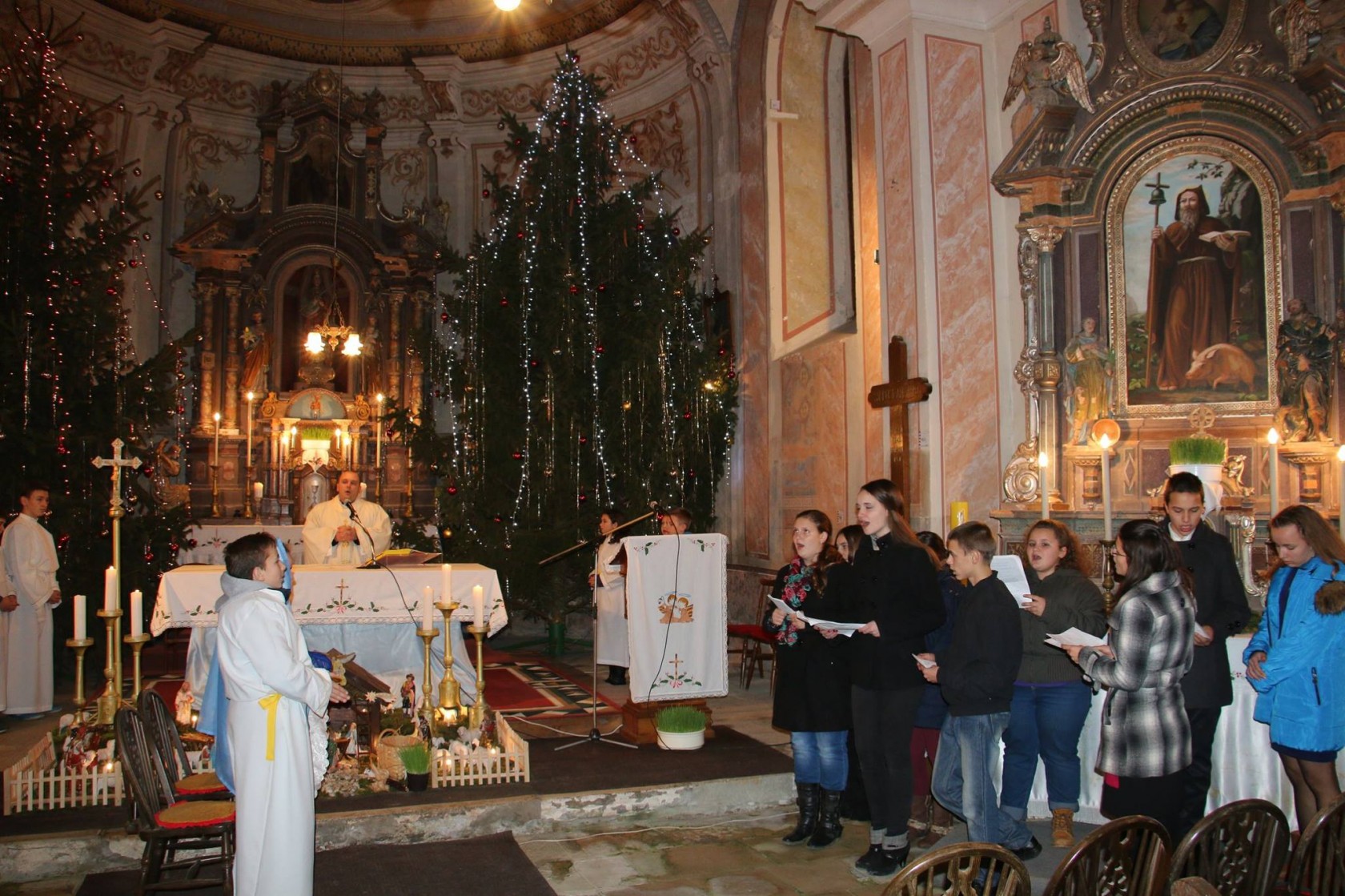 Mladež župa Gaj i Antunovac prije početka obje Polnoćke otpjevali su Božićne pjesme i recitirali molitvu što su pripremili za tu prigodu sa župnikom Stjepanom Škovrcem.