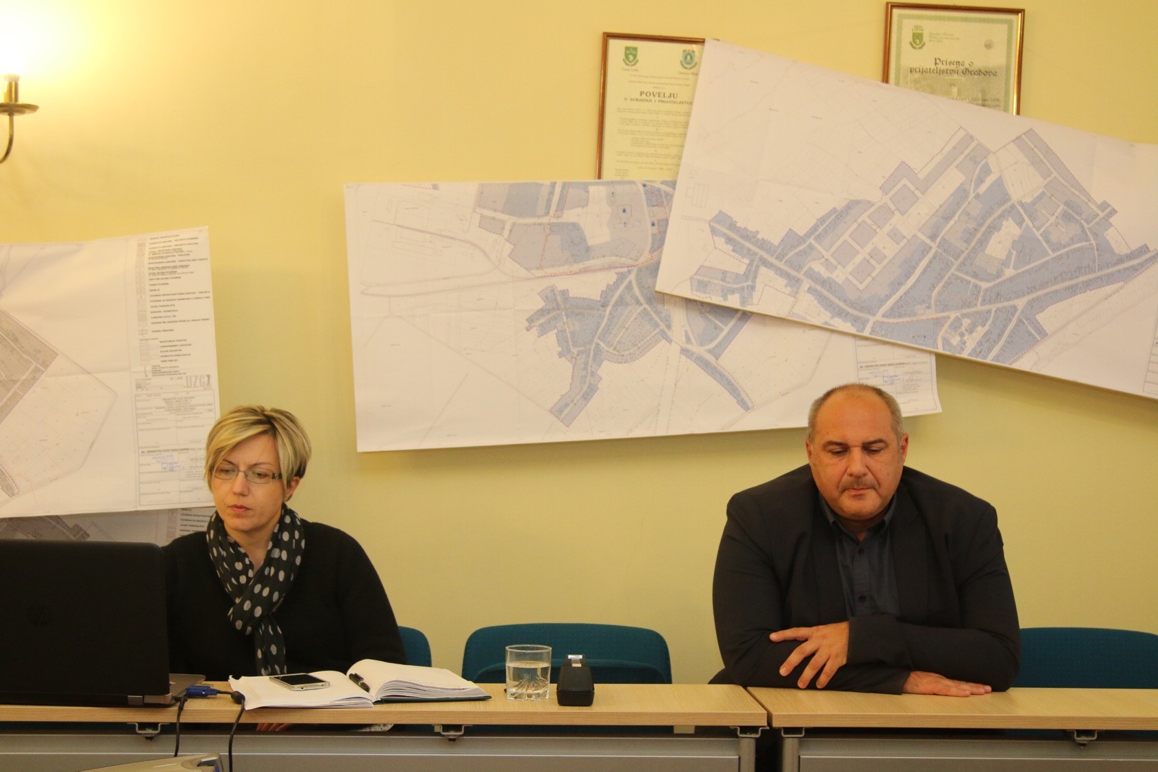 S druge strane sjedio je gradonačelnik Lipika Vinko Kasana, voditeljica Odsjeka za pravne poslove, graditeljstvo i komunalne djelatnosti Irena Tutić zadužena za koordinaciju aktivnosti donošenja urbanističkih planova te arhitekt Zoran Hebar i direktor Darijen Belec iz Urbanističkog zavoda Grada Zagreba koji je izradio prijedlog urbanističkih planova.