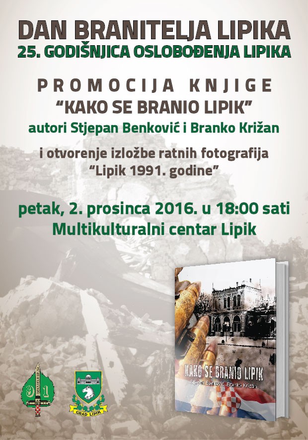 Knjiga „Kako se branio Lipik“ će biti promovirana 2. prosinca u 18 sati u Multikulturalnom centru, a organizator promocije kao i cijelog obilježavanja i ove godine je Udruga branitelja Lipika 1991. Spomenuta knjiga je vrlo vrijedan povijesni zapis, prvi ovakve vrsta i obima na temu Domovinskog rata u samom Lipiku. Nastajala je duže od 5 godina, a tijekom istraživanja ove teme autori su napravili gotovo 300 intervjua s neposrednim sudionicima događanja iz 1991. ili suvremenicima tog vremena. Knjiga je izuzetno zanimljiva i dinamična čemu svakako pridonose upravo svjedočanstva samih branitelja i ostalih sudionika obrane i oslobođenja Lipika. Njihove izjave koje su citirane u knjizi su izravne, jednostavne i razumljive, uglavnom ispričane s puno emocija i strasti i upravo ta strast samom čitatelju vrlo živopisno dočarava, čak i oživljavanja, ratna događanja u Lipiku. Autori su posebno kvalitetno obradili vrijeme koje je prethodilo otvorenom početku ratnih događanja, kao ratnu kronologiju, bitke za Lipik, neprijateljske ofenzive, ali i braniteljske protuofenzive, zaključno s veličanstvenom pobjedom i oslobođenjem Lipika 6. prosinca. Knjiga „Kako se branio Lipik“ je napisana na čak 480 stranica u boji, sadrži 350 fotografija, brojne vojne mape, zemljovide, grafičke prikaze, isječke iz novina, preslike dokumenata kao i fotografije i kratke životopise svih poginulih branitelja iz 1991. Ova je knjiga izvanredan povijesni dokument koji se čita praktički u dahu.