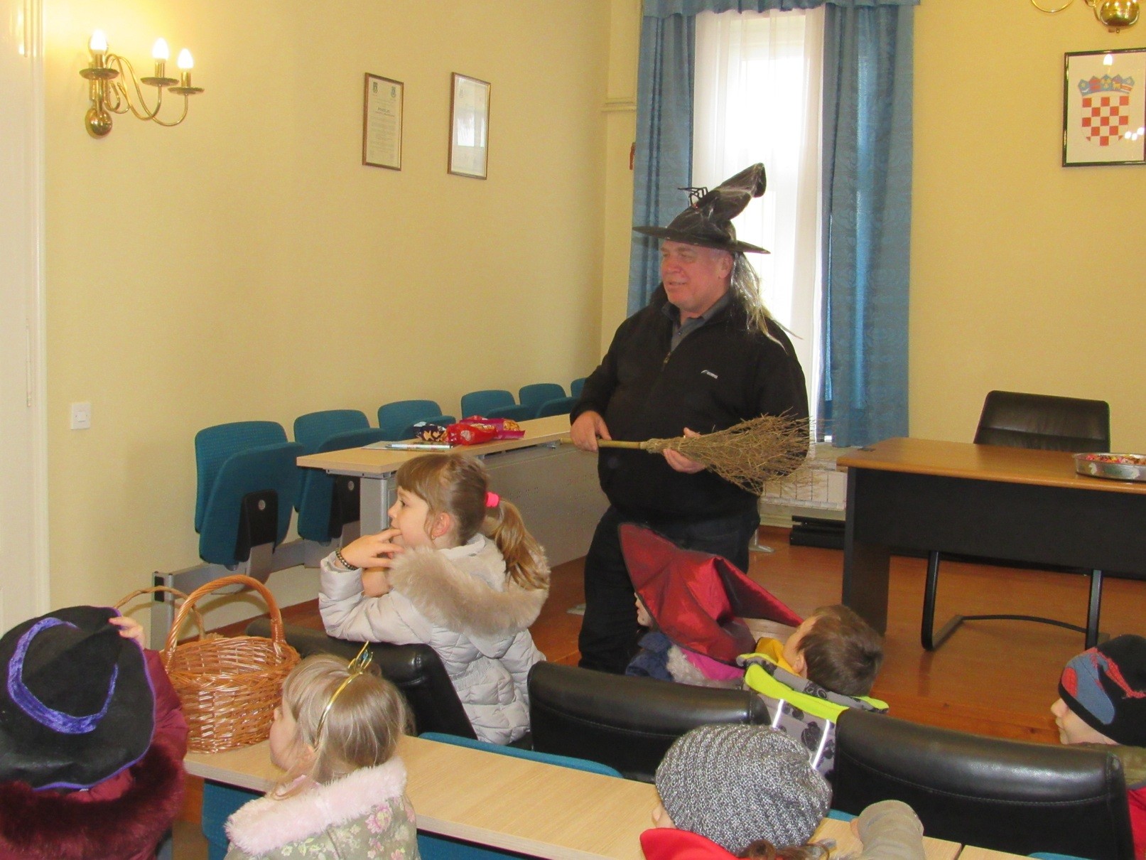 Djecu su u velikoj vijećnici dočekali bomboni koji su ih jako obradovali, a gradonačelnik im je darovao još slatkiša koje su ponijeli sa sobom. Uz druženje te priču s gradonačelnikom, malene maškare su i zapjevale, a na kraju su uspjeli i nagovoriti gradonačelnika da se maskira.