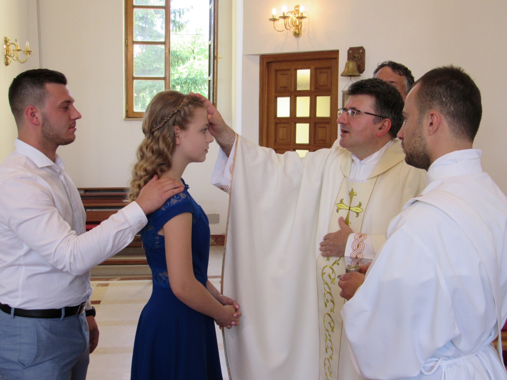 Najsvečaniji trenutak bio je sam čin podjele sakramenta u kojem su krizmanici s kumovima dolazili pokraj oltara te su primili Duha Svetoga uz mazanje mirisnim uljem uz riječi primi pečat dara Duha Svetoga.