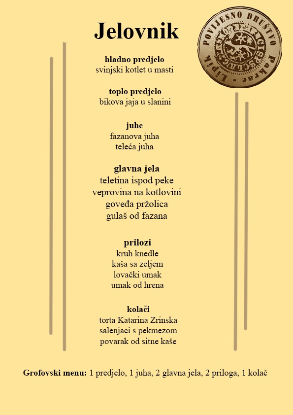 Nakon podužeg istraživanja kulinarskih recepata iz 18. i 19. stoljeća odlučili su se za Grofovski meni kojim ćete se moći pogostiti za samo 20 kuna!!!