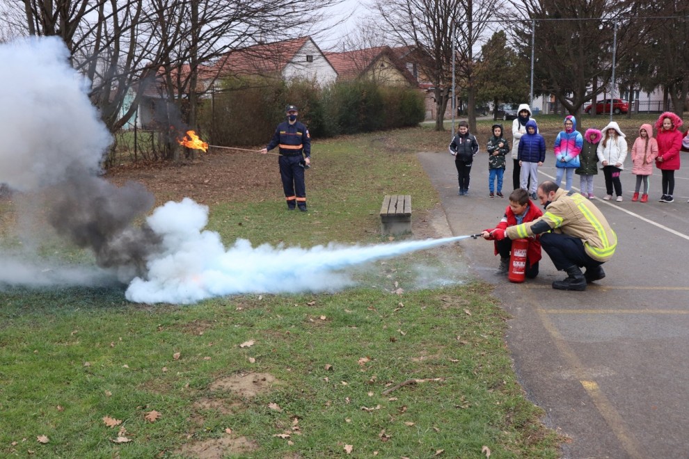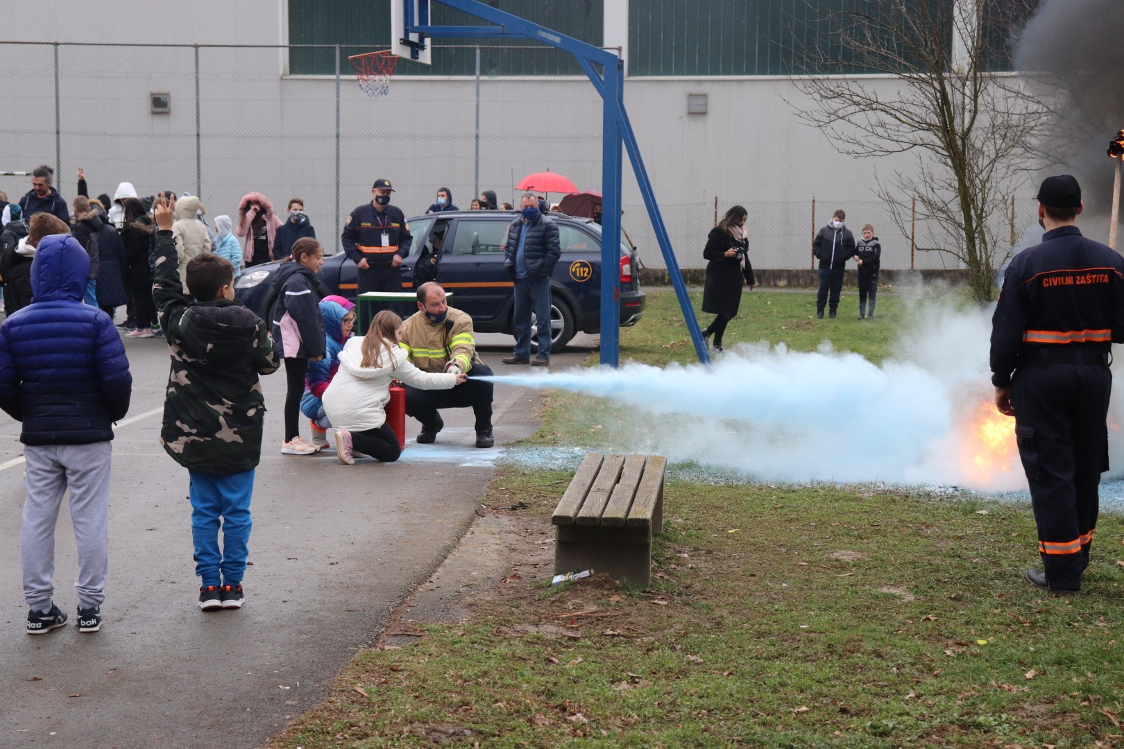 Nakon uspješno provedene evakuacijske vježbe na igralištu iza škole provedena je i demonstracija gašenja zapaljivih tekućina s više vrsta aparata za gašenje prahom u kojem su se uz osoblje Osnovne škole Lipik okušali i učenici stječući vrijedno iskustvo.