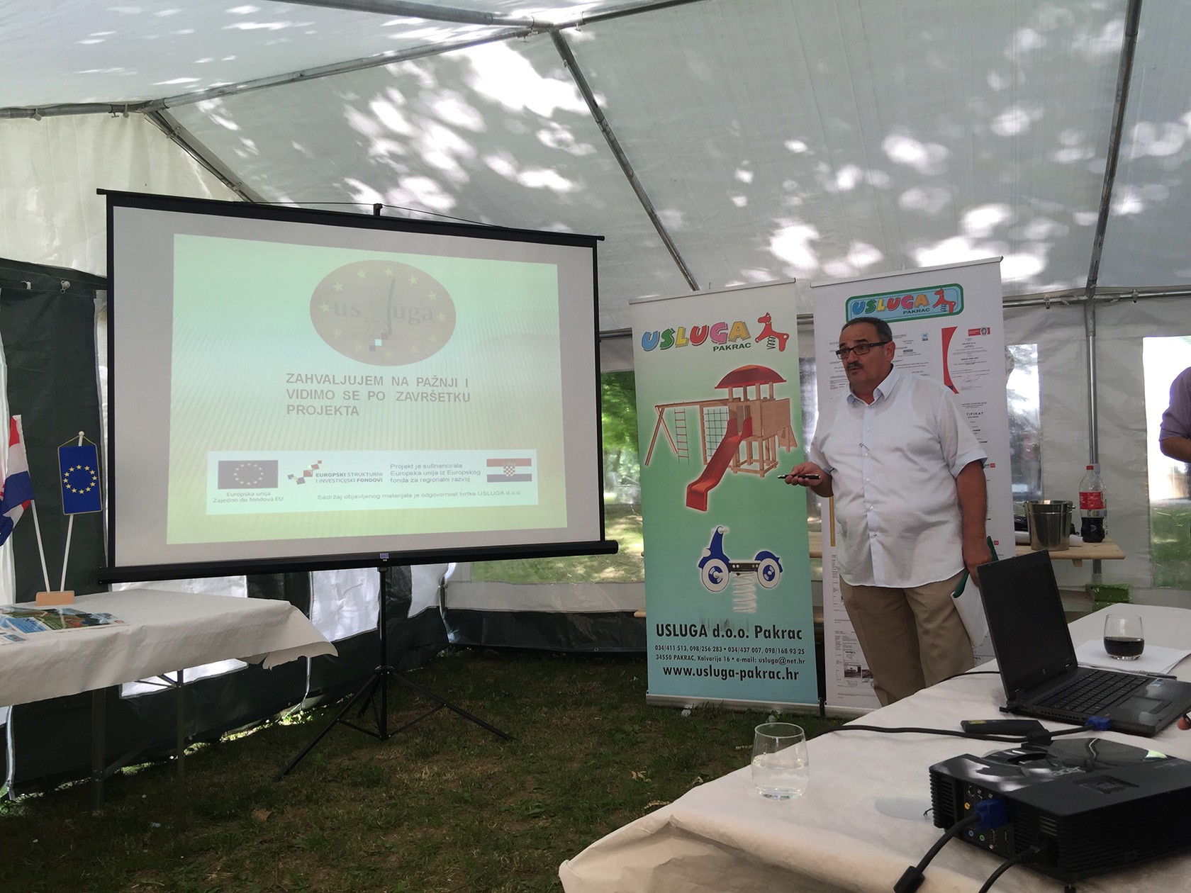 Na 51. Međunarodnoj vrtnoj izložbi Flora Art u Zagrebu na Bundeku 2. lipnja predstavnik tvrtke Usluga d.o.o. Marijan Turuk predstavio je pred pedesetak poslovnih partnera projekt "Usluga d.o.o. - Novi pogon", projekt koji je sufinanciran sredstvima EU fonda za regionalni razvoj, a kojim će se u Gornjoj Obriježi graditi novi pogon za proizvodnju i obradu metala.