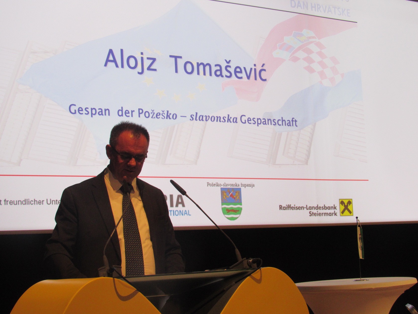 Skup Dan Hrvatske u Austriji održao se po 14. put u organizaciji Hrvatsko-austrijske trgovinske komore pod pokroviteljstvom Ministarstva gospodarstva Republike Hrvatske, a partner je ove godine bila Požeško-slavonska županija. Uz predstavljanje gospodarstvenika naše županije potencijale za ulaganje predstavio je župan Alojz Tomašević koji je istaknuo kako na području županije imamo 727 aktivnih trgovačkih društava, a kako se na prostorima gradova osnivaju te postoje poslovne zone koje mogu osigurati prostor za razvitak poslovnih subjekata uz povoljne cijene zemljišta i niz dodatnih olakšica.