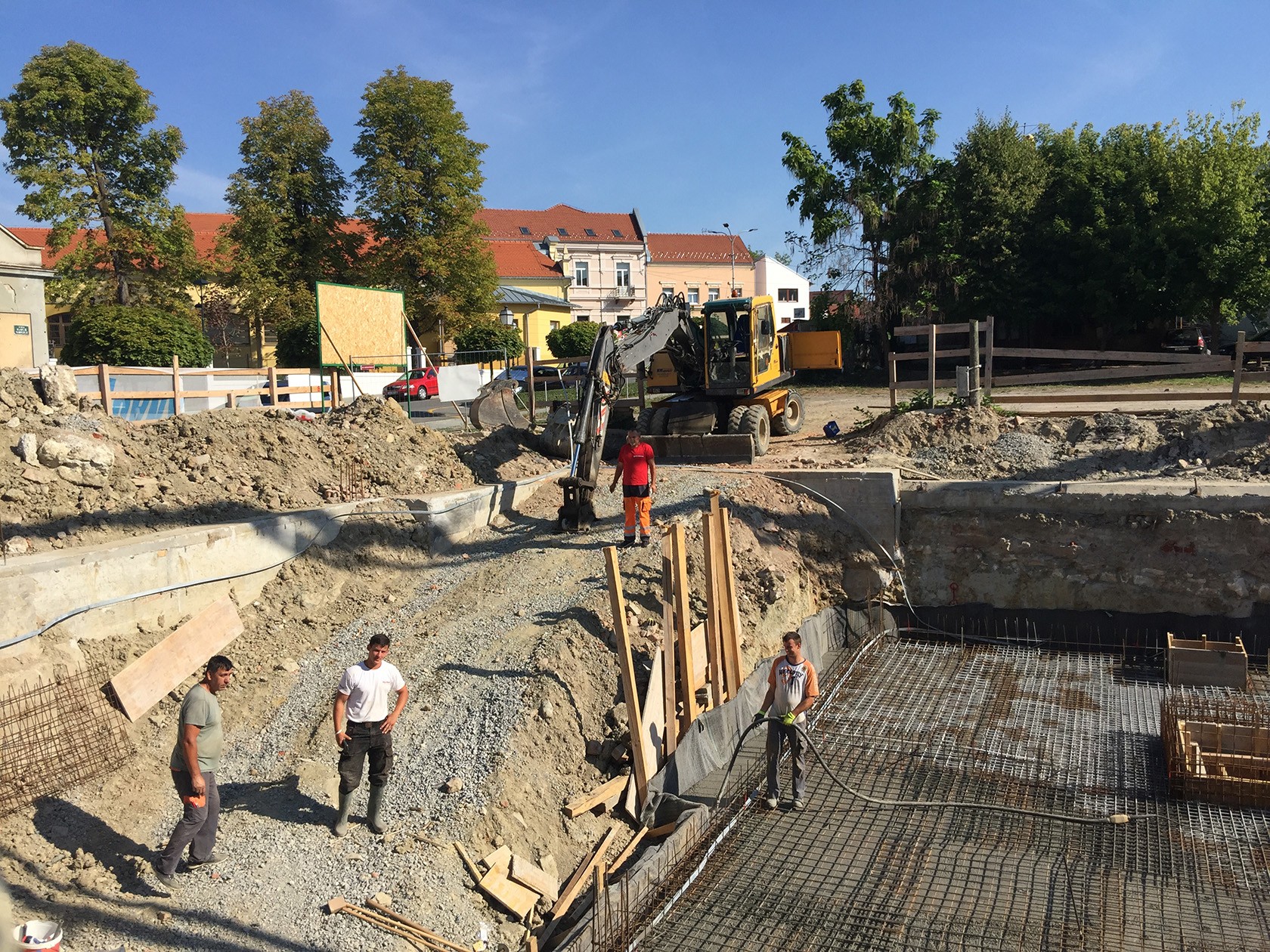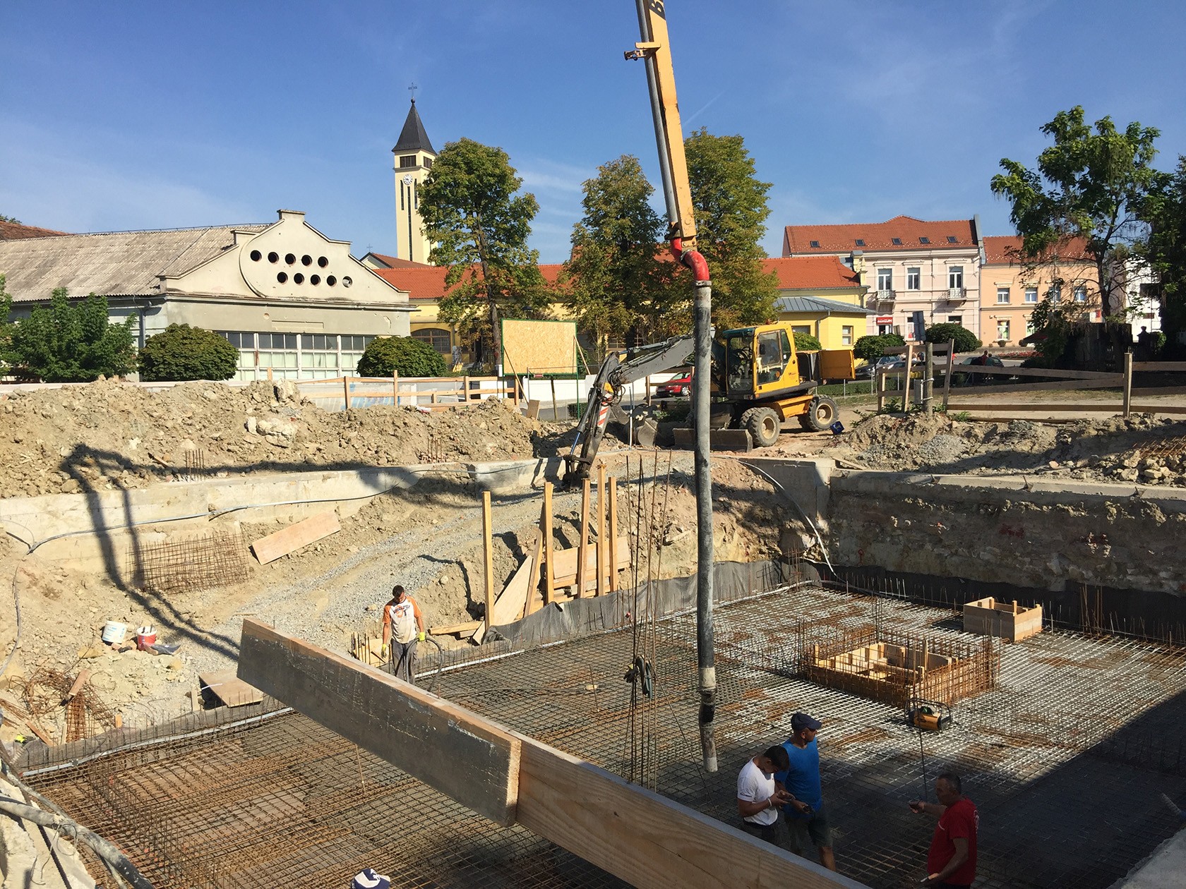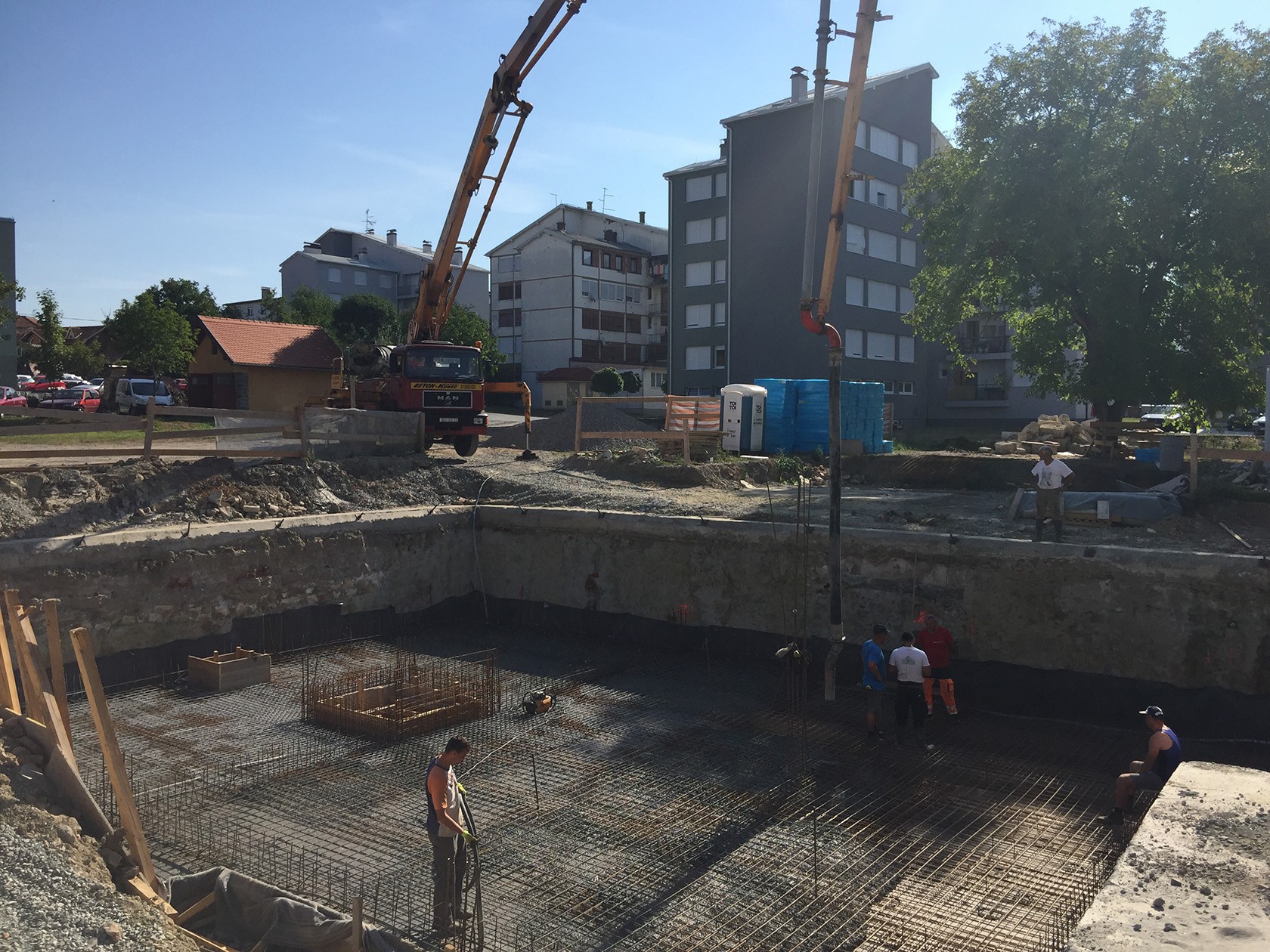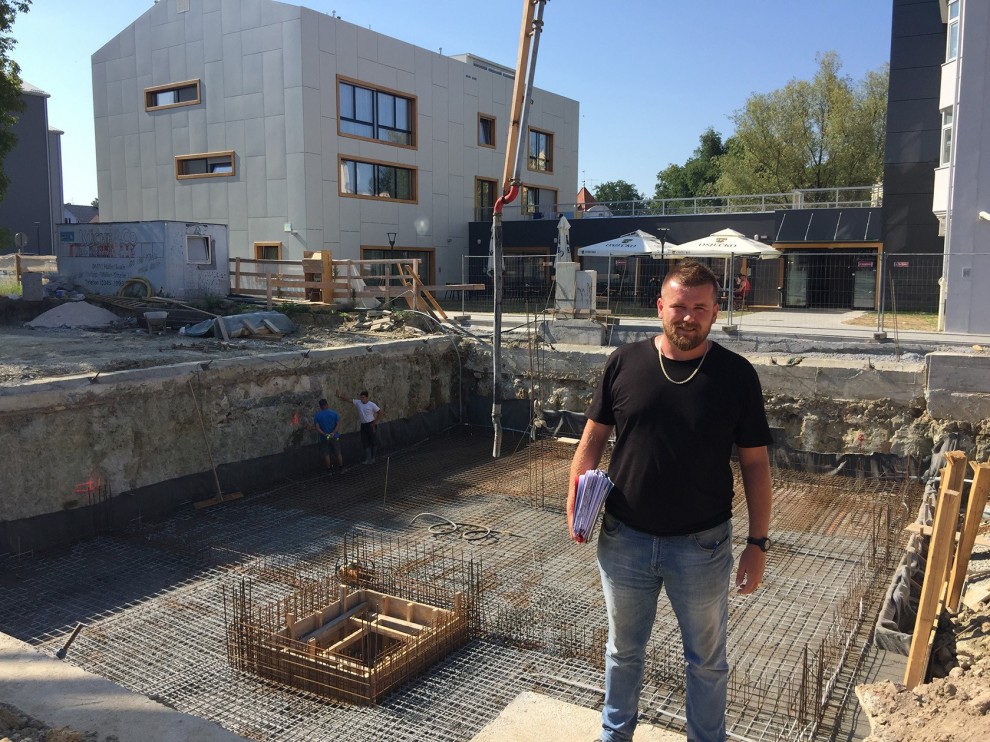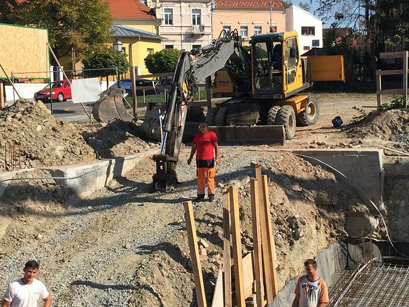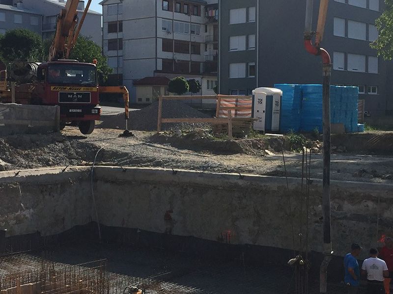 - S obzirom na to da zgrada ima 2/3 podrumljenog dijela, s ovim će biti završena faza temelja zgrade budući da su trakasti temelji nepodrumljenog dijela zgrade već napravljeni prije dva tjedna, govori voditelj gradilišta Martić te dodaje kako se idući tjedan planira hidro i toplinska izolacija podrumskih zidova nakon čega se objekt podiže prema gore.