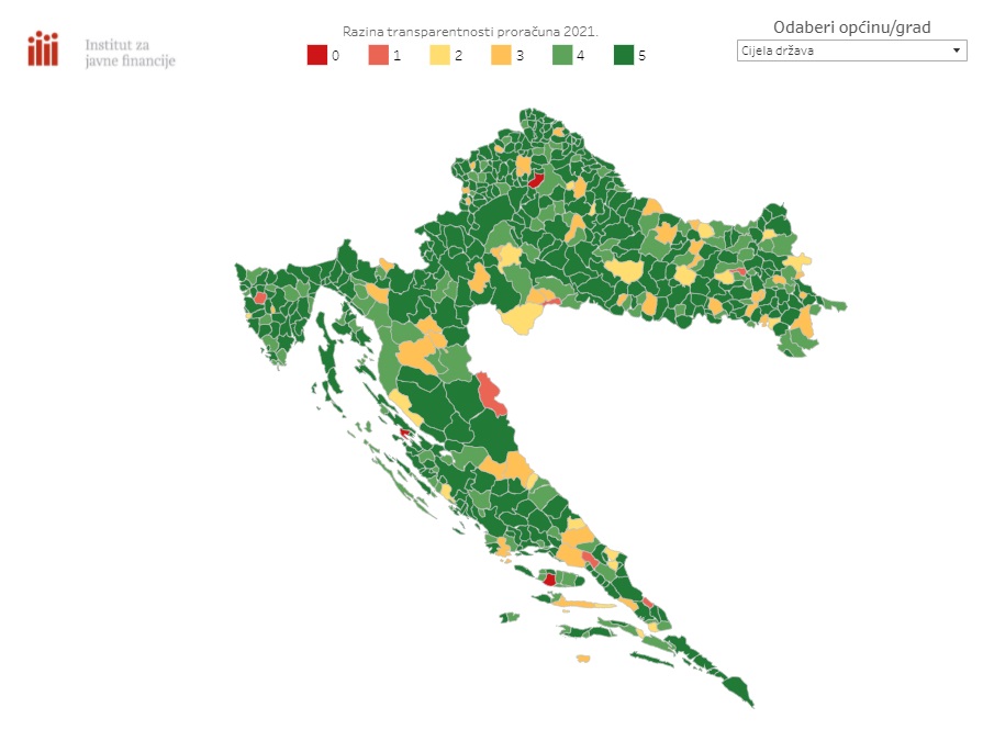 Rezultati su ovo sedmog ciklusa istraživanja proračunske transparentnosti za 576 hrvatskih JLS-a (županija, gradova i općina) koje je u ponedjeljak predstavio Institut za javne financije, a koji pokazuju daljnji napredak i trend rasta transparentnosti. Prosječna proračunska transparentnost – mjerena brojem proračunskih dokumenata objavljenih na mrežnim stranicama županija, gradova i općina – iz godine u godinu se popravlja, navodi se u priopćenju ovog Instituta.