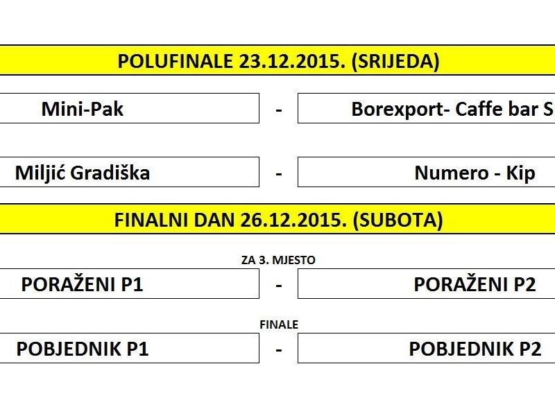 Poznati su svi polufinalisti 13. Božićnog malonogometnog turnira Lipik 2015; Mini-Pak, Miljić Gradiška, Numer-Kip i Borexport/Caffe bar Speed.