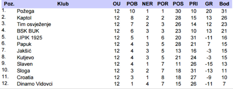 U nastavku proljetnog dijela prvenstva nogometne sezone NK Lipik 1925 je 25. ožujka na domaćem terenu slavio s visokih 4:0 protiv Slavena iz Gradca i ovom pobjedom nalazi se na petom mjestu sa 16 bodova te u sljedećem 13. kolu 1. travnja na domaćem terenu dočekuje Kutjevo koje se nalazi na osmom mjestu s jednim bodom zaostatka za Lipikom.