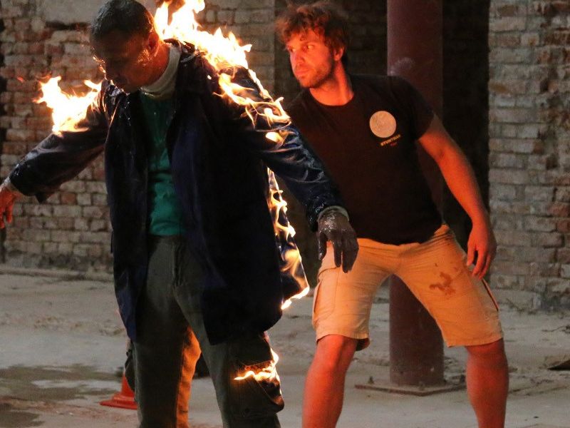 Na treningu zapaljenja u Kursalonu koji je poslužio kao poligon posjetio ih je i gradonačelnik Lipika Vinko Kasana. Složenost cijelog procesa izvedbe zapaljenja, koji napominjemo nemojte pokušavati kod kuće, je višestruka. Nekoliko slojeva odjeće, od čega su neki namočeni u vodeni gel koji štiti od vatre te je toplinski izolator, označavanje kaskadera posebnim premazima, benzinom, zapaljivom tvari, dobiva se plamen koji nije vruć kao klasična vatra. No svejedno vatra je, a s vatrom se treba oprezno igrati. Netko zapaljenu osobu treba i ugasiti kad za to dođe vrijeme pa drugi kaskaderi u nezapaljivim kombinezonima drže deke i vatrogasne aparate, a prisutan je i doktor ako situacija ne daj Bože izmakne kontroli.