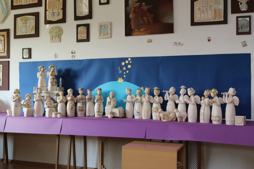 "Poklonstvo anđela" je keramička kompozicija koja prikazuje Kristovo rođenje, sastoji se od 27 figura koje zauzimaju prostor u dužini tri metra, jedan metar širine s visinom od 0,65 metara. Visina pojedinačne figure anđela varira od 37 do 40 centimetara.