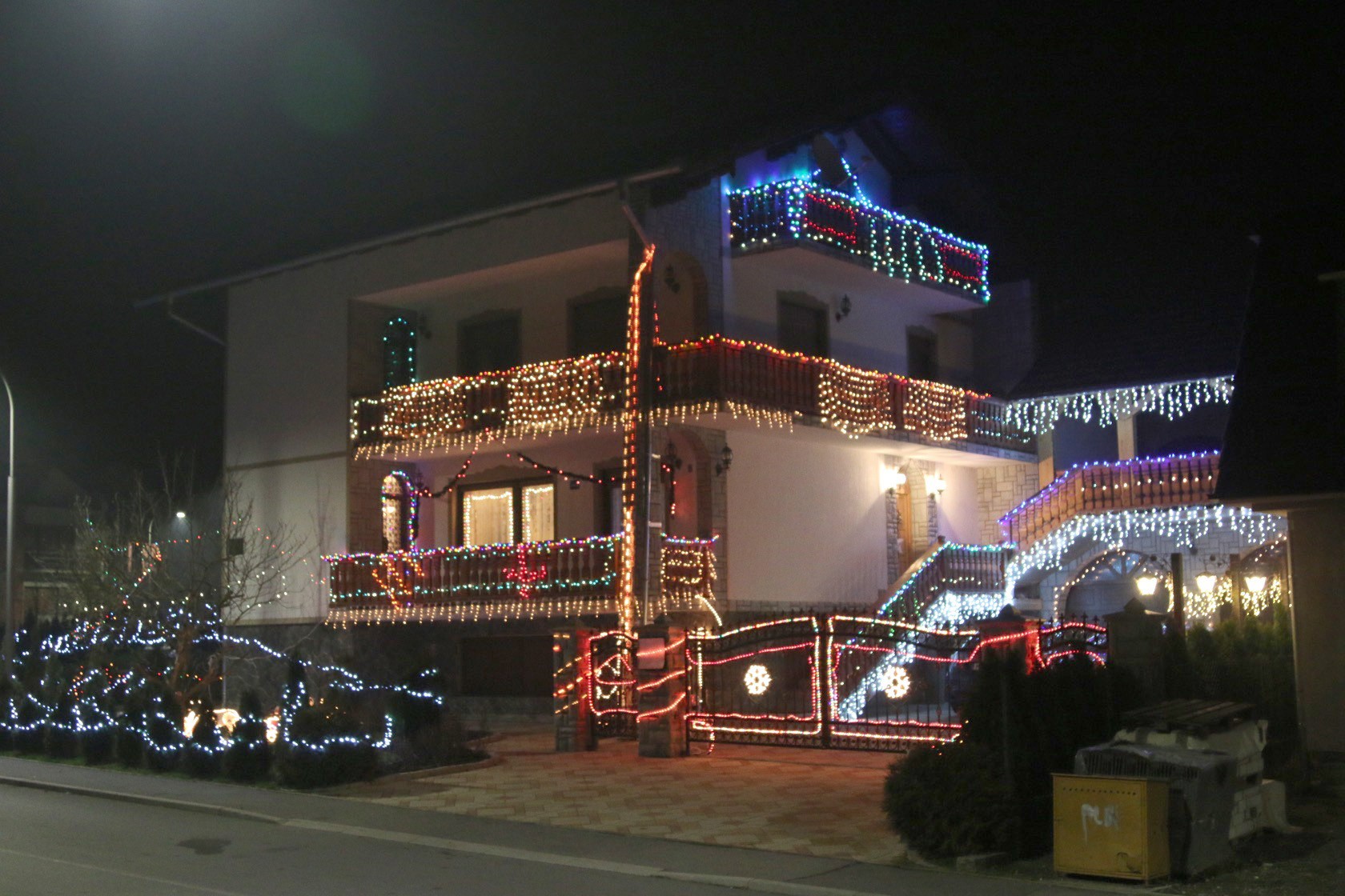 Uz to što svijetli u svim bojama i svira nekoliko božićnih pjesama istovremeno. Čuje se glazba vani, ali i unutar kuće. Lipički Las Vegas svake godine malo naraste, ove godine je okićeno okolno nisko raslinje, ograde sa zvijezdama, novoizgrađena terasa nad garažom i sve je više LED rasvjete koja manje troši, a jače svijetli.