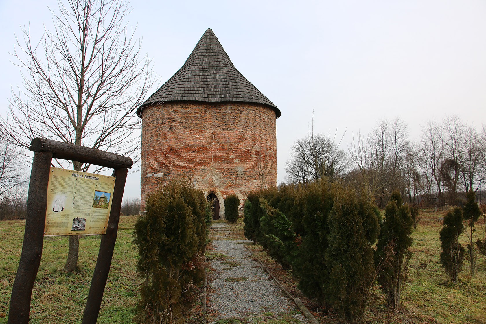 Ispred ulaza u crkvu sv. Pantelejmona u okviru akcije uređenja okoliša provedene 2010. godine Povijesno društvo Pakrac-Lipik i Muzej grada Pakraca postavili su tablu na kojoj su zapisani istraženi povijesni podaci o prošlosti lokaliteta i prikazana je fotografija kako je lokacija izgledala 2008. godine prije nego su volonteri raskrčili šikaru, uredili stazu do ulaza crkve te postavili klupe i stol za odmor izletnika.