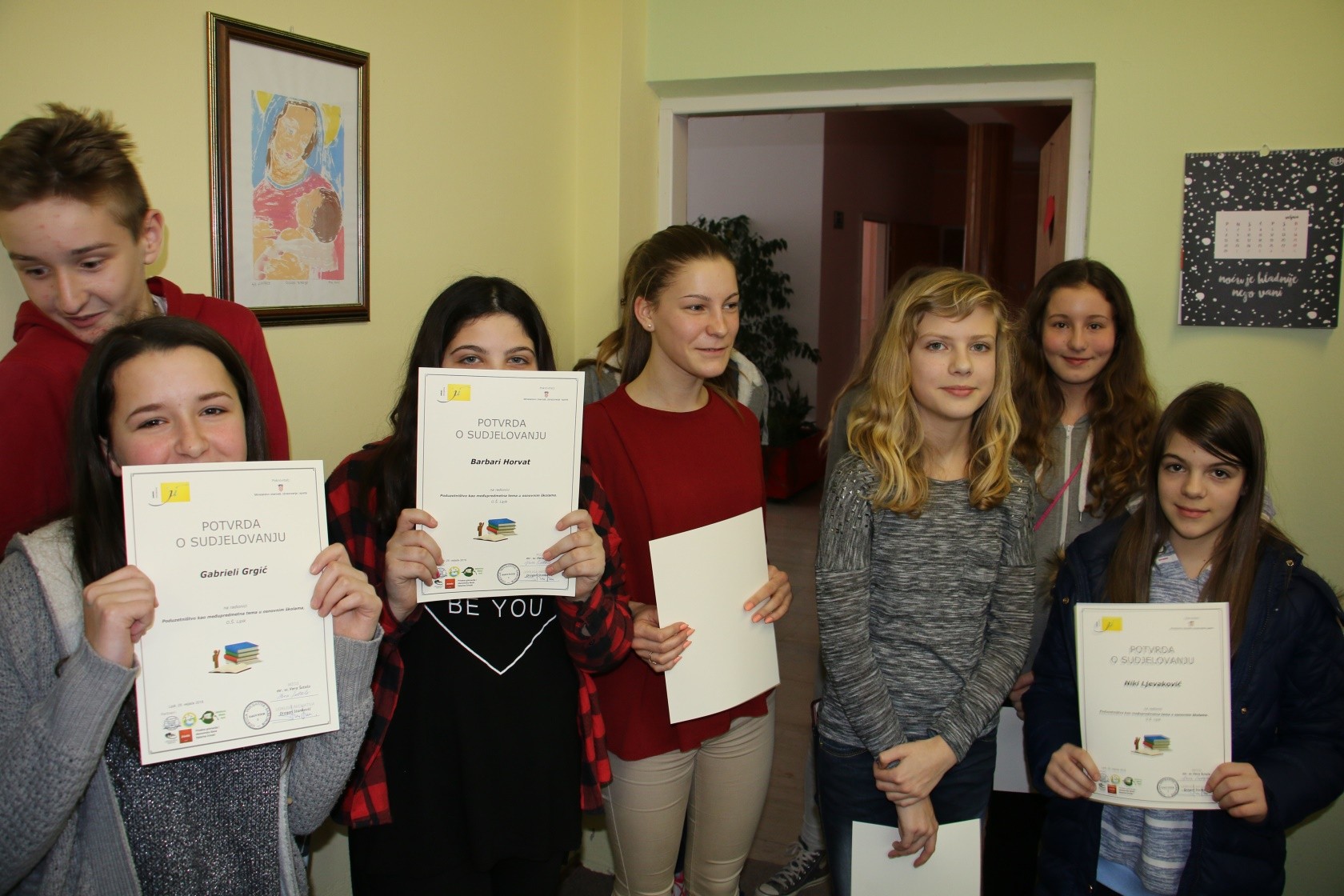 Nakon prezentacije gradonačelnik Kasana i ravnateljica Klaudija Kovač podijelili su potvrde o sudjelovanju u projektu svim učenicima, njihovim učiteljima i suradnicima iz Obrazovne grupe Zrinski. „Puno smo napravili kroz ove radionice na temu poduzetništva s našim najmlađima. Očekujem da ste vi učitelji poduzetni kao što ste to dosad bili te kako ćete poduzetni ostati i dalje.“, rekla je ravnateljica Klaudija Kovač. „Znam da u okviru Obrazovne grupe postoji program za djecu u vrtiću pa možemo stupiti u kontakt kako bi nastavili suradnju u našem vrtiću. Tema poduzetništva vrlo je važna jer su na kraju poduzetnici oni koji stvaraju nove vrijednosti i samim time osiguravaju sredstva za škole i nas u gradskoj upravi te cijeloj lokalnoj zajednici.“, rekao je gradonačelnik Kasana i pohvalio školu, učitelje, predstavnike Obrazovne grupe Zrinski te sve koji su sudjelovali u provedbi projekta.