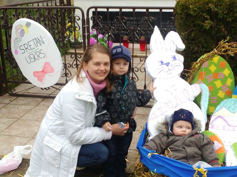 Vrijedne ruke članica udruge izradile su pisanice i uskrsnog zeca od stiropora te su ih postavili u gnijezdo pripremljeno od prirodnih materijala. Cijelo vrijeme dok su izrađivali ukrase zabavljali su ih djeca koja su se najviše obradovala kad je posao završen.