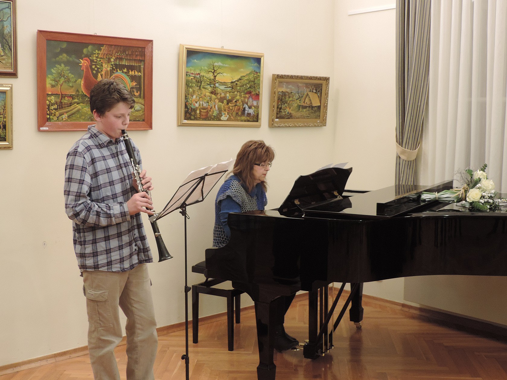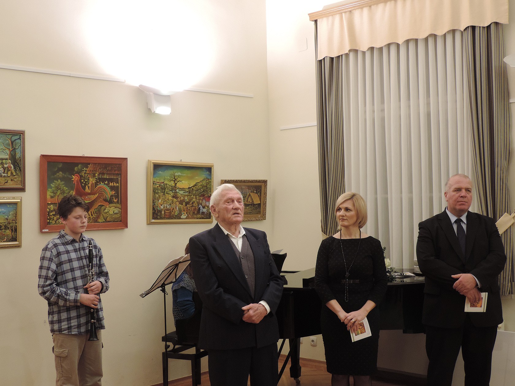 Otvorenju izložbe glazbenu notu dali su izvedbom dvije skladbe Ivan Cah na klarinetu uz pratnju profesorice Jadranke Radonić-Sirovica na klaviru.