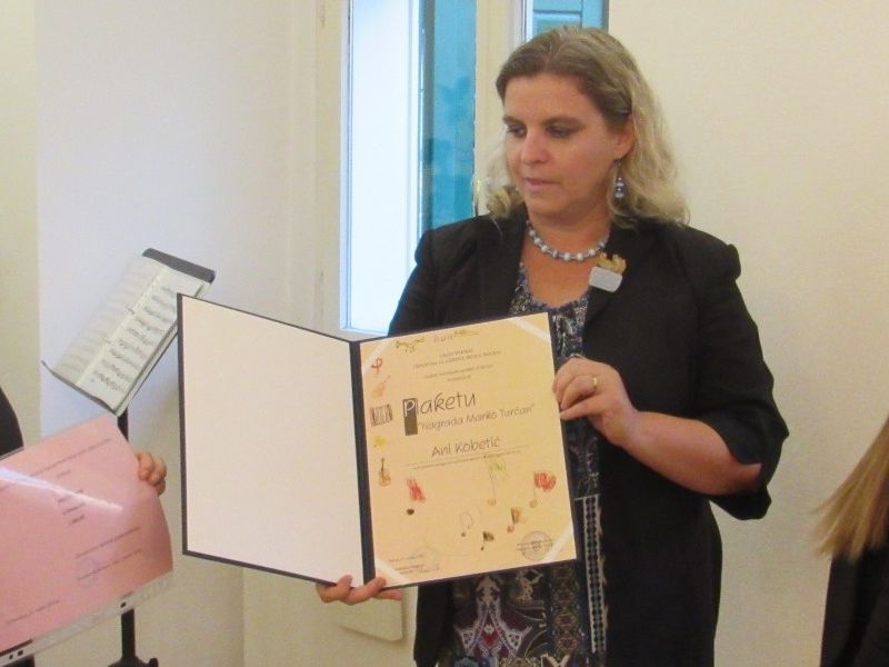 Ravnateljica Alfreda Petani-Grafina prenijela je okupljenima u koncertnoj dvorani pozdrave i čestitke ovogodišnjoj dobitnici nagrade od obitelji Marka Turčana, nadarenog učenika škole koji je tragično preminuo prije devet godina i po kojem ova nagrada učenicima za izvanredna postignuća u glazbi nosi ime. „Nagrada se dodjeljuje ove godine osmi put. Na današnji dan prošlo je devet godina otkako je naš Marko preminuo. Ovom nagradom smo htjeli animirati sve naše učenike da se ističu. Ne samo svojim školskim uspjesima već ponašanjem i odnosom prema školi, učenicima i učiteljima. U 2016. godini se dodjeljuje učenici glasovira Ani Kobetić za izvanredna postignuća u području glazbe.“, rekla je tijekom uvodnog dijela programa dodjele ravnateljica Alfreda Petani-Grafina te navela redom dosadašnje dobitnike nagrade: tamburašica Lara Kelemen 2009. koja je danas uspješna studentica Muzičke akademije, harmonikašica Stefani Majdandžić 2010., flautistica Dunja Đurđević 2011., flautistica Antonela Vonić 2012., tamburaš Franko Kelemen 2013., harmonikaš Josip Slijepčević 2014. te prošle godine flautistica Laura Kudrić. Ove godine prvi puta je nagradu jedna učenica glasovira.