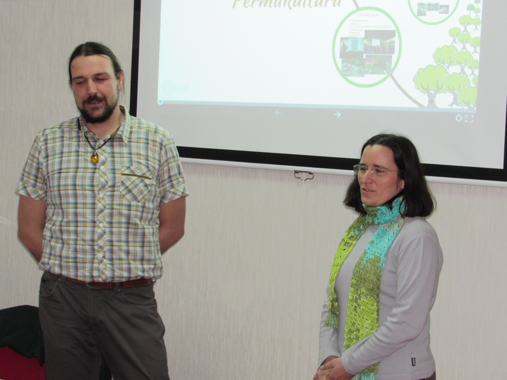 Sunčana Pešak dugo vremena je provela radeći u okviru „Zelene mreže“ raznih aktivističkih grupa i udruga, kako se sama predstavila, te dodala kako je njezino glavno polje interesa permakultura koja povezuje sva njezina područja kojima se bavi, a od 18. godine se aktivno bavi sjemenarstvom i očuvanjem starih sorti biljaka. Kristijan Đaković rekao je kako je do ovog predavanja zapravo došlo spontano te da dolazi iz Slavonskog Broda, ali od prije tri godine je naš sugrađanin jer se doselio sa suprugom u Gornju Šumetlicu gdje su kupili kuću i imanje te pokušavaju, kako kaže, širiti riječ o permakulturi te u G. Šumetlici napraviti jedno pokazno imanje kako bi na njemu ljudi mogli doći i vidjeti što to permakultura je i što je sve moguće postići s primjenom principa permakulture.