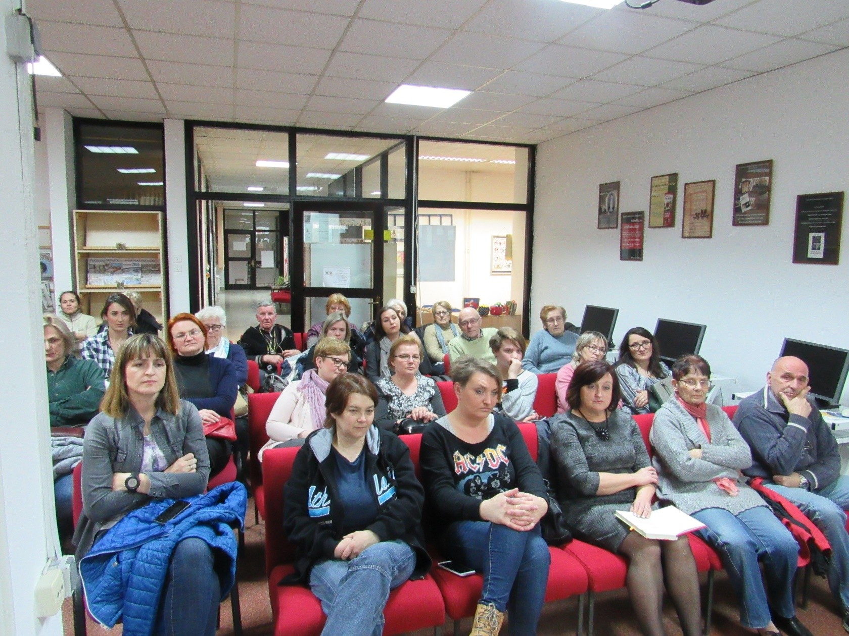 Na početku književne večeri u prostoru knjižnice ispunjenog do zadnjeg mjesta ravnateljica Monika Lucić-Fider pozdravila je gradonačelnicu Pakraca Anamariju Blažević i zahvalila joj se što se odazvala pozivu te nagrađivanu domaću književnicu Marinu Vujčić, glavni razlog što su se svi prisutni u velikom broju okupili na ovom književnom kružoku.