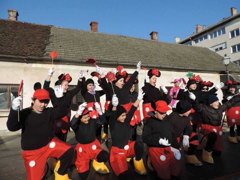 Dječji vrtić „Kockica“ Lipik predstavljali su patuljci sa Snjeguljicom, zločestom maćehom i lovcem, a predškolska grupa vrtića maskirala se u parove Miki i Mini Maus, dok su iz Poljane došli mali čarobnjaci. Niži razredi Osnovne škole „Lipik“ maskirali su se u veselu abecedu, vesele satove, male prometne znakove, suncokrete, zvončare, Miki Mause, male domoroce iz Afrike i vitezove, a iz Područne škole u Dobrovcu došli su klaunovi. Više razrede škole predstavili su kaubojke i vojnici, super junaci s posebnim moćima, ljudi u crnom, neandertalci iz Krapine, gay parada te rokeri. Zadnju točku izvela su djeca iz „Češke Besede“ Prekopakra.