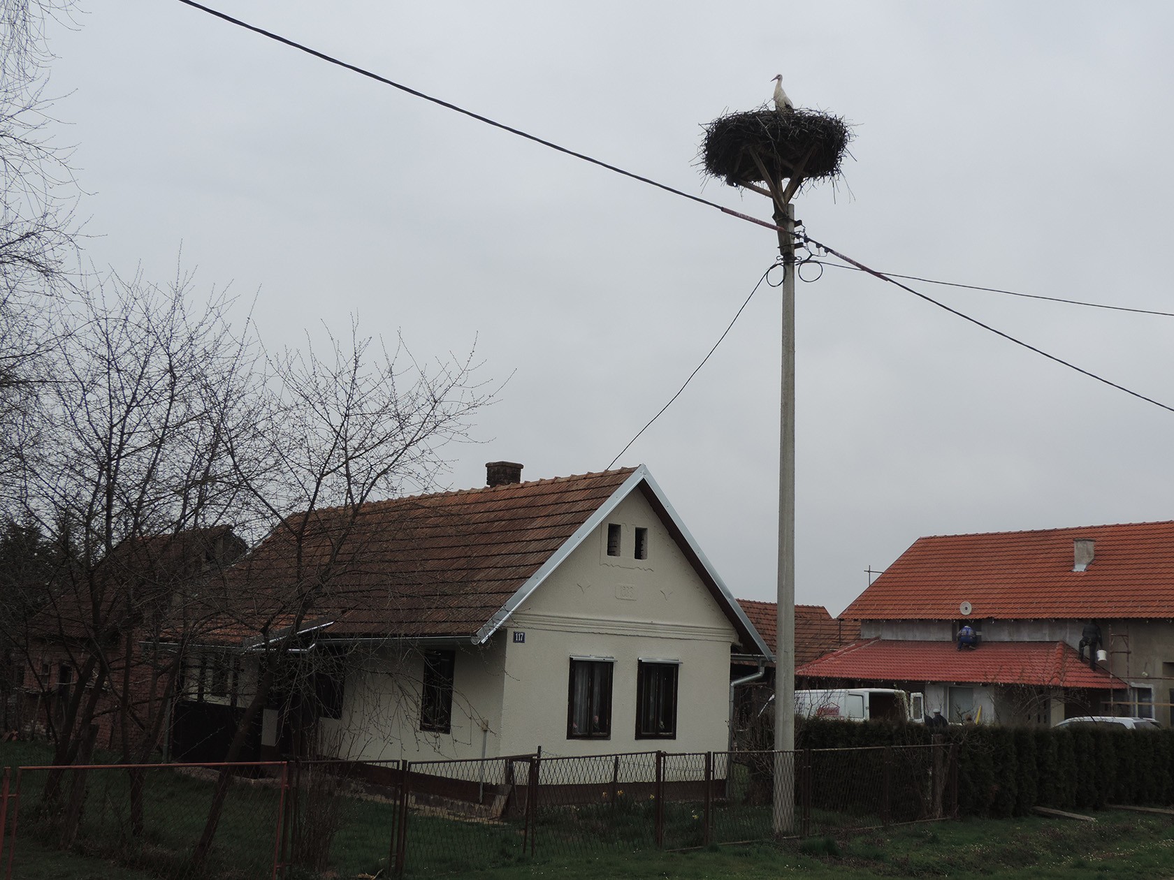 Osim na dimnjaku škole vratile su se rode u još jedno gnijezdo na stupu niskonaponske mreže ispred kuće u Varoškoj ulici. U trenutku fotografiranja polovica para rode imala je važnijeg posla, sjedenje na jajima, pa nije bila zainteresirana za poziranje, a druga polovica para bila je vjerojatno u nabavi.