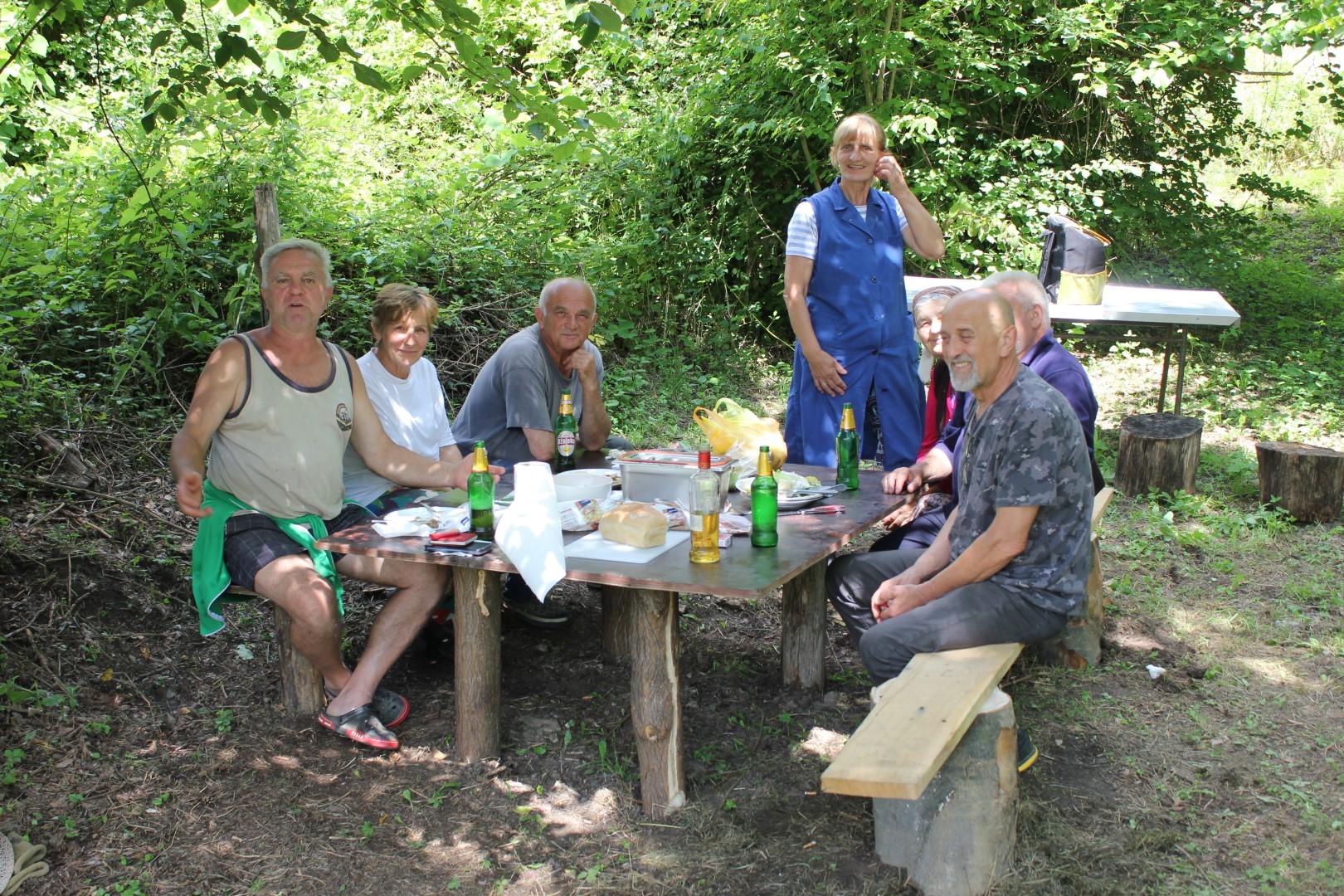 Vesela družina mještana stol i klupe je u pauzi radne akcije postavljanja ograde već isprobala, a pozivaju i Vas da navratite do njihovog sela, kušate vodu i odmorite u hladu „Kruškine vode“ u ovom pitoresknom ruralnom kraju.