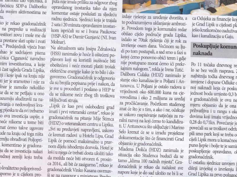 U jeku burnih vremenskih neprilika jednako burna bila je i 8. sjednica gradskog vijeća održana 11. rujna, a najviše rasprave bilo je između predstavnika pozicije i opozicije oko projekta izgradnje tvornice float stakla. Najavljeni su i skorašnji počeci radova na Hotelu Lipa koji će biti prvi veteranski centar u Hrvatskoj, radi čega je nekoliko dana ranije Lipik posjetio i ministar branitelja Predrag Matić.