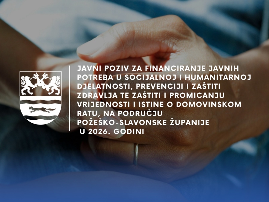 U svrhu dodjele financijskih sredstava za sufinanciranje programa i projekata od interesa za opće dobro koje provode organizacije civilnog društva (udruge), objavljen je Javni poziv za financiranje javnih potreba u socijalnoj i humanitarnoj djelatnosti, prevenciji i zaštiti zdravlja te zaštiti i promicanju vrijednosti i istine o Domovinskom ratu, na području Požeško-slavonske županije u 2026. godini.
