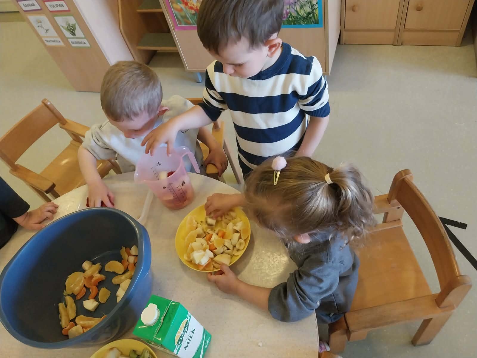 Uz tjelesne aktivnosti, pažnja je posvećena i pravilnoj prehrani. Djeca mlađe skupine, zajedno sa svojom odgojiteljicom Vedranom Molnar Kelemen, pripremala su zdravi napitak, čime su na praktičan način učila o važnosti uravnotežene prehrane.