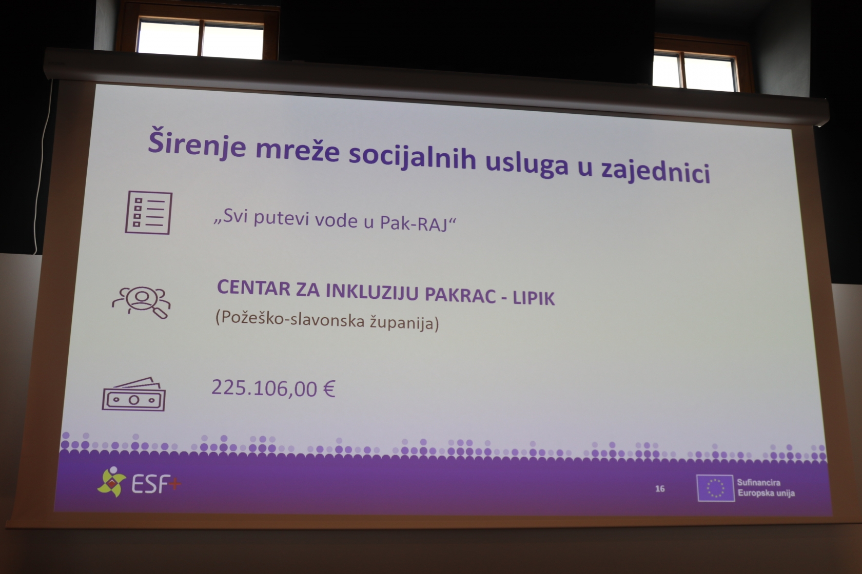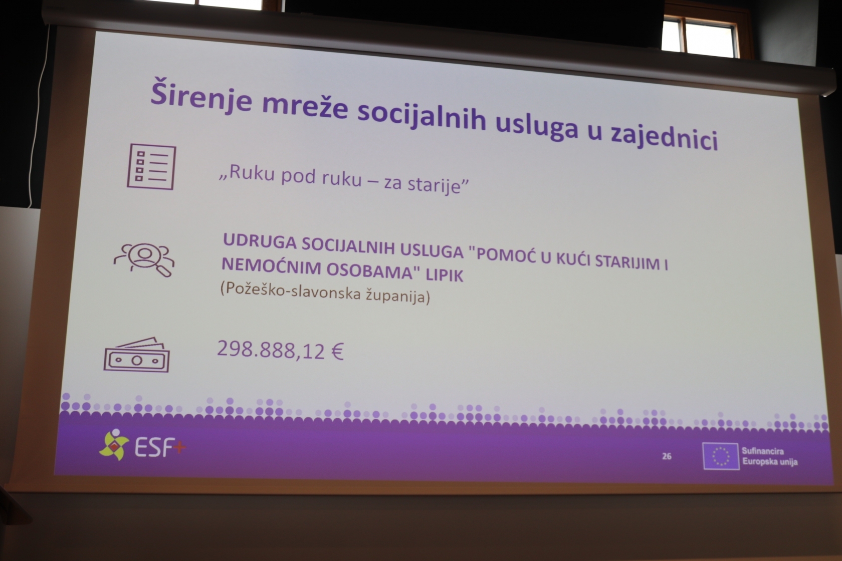 U okviru dodjele uručeno je ukupno 35 ugovora pružateljima socijalnih usluga iz pet slavonskih županija, ukupne vrijednosti 9,5 milijuna eura. Projekti su sufinancirani sredstvima Europskog socijalnog fonda plus, uz potporu državnog proračuna. Obuhvaćaju širok krug korisnika, uključujući osobe starije životne dobi, osobe s invaliditetom, žrtve nasilja, osobe s problemima ovisnosti, beskućnike, kao i druge skupine kojima je potrebna podrška u zajednici.