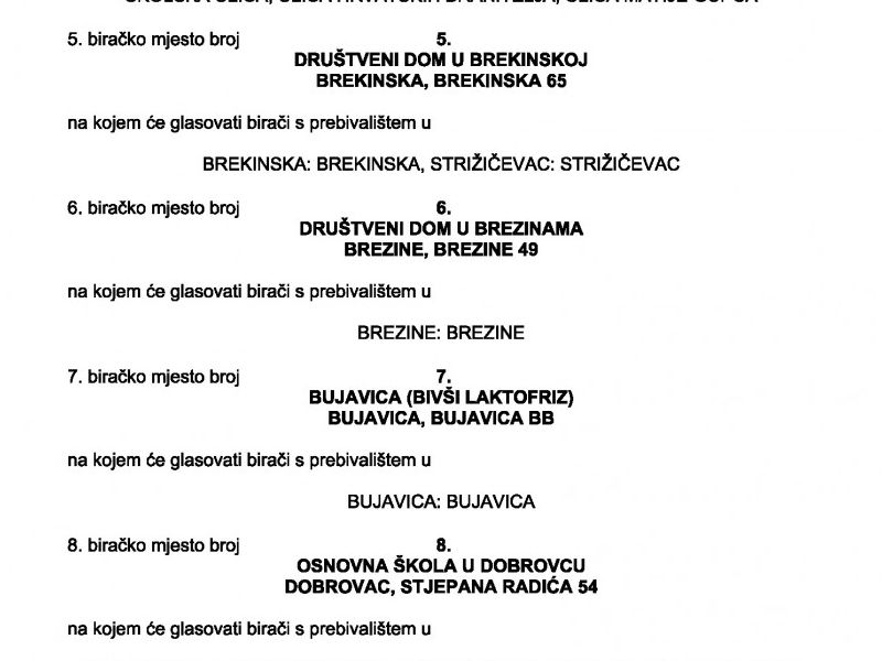 Biračko mjesto broj 6. u Brezinama, Društveni dom u Brezinama, Brezine kbr. 49, na kojem će glasovati birači s prebivalištem u Brezinama,