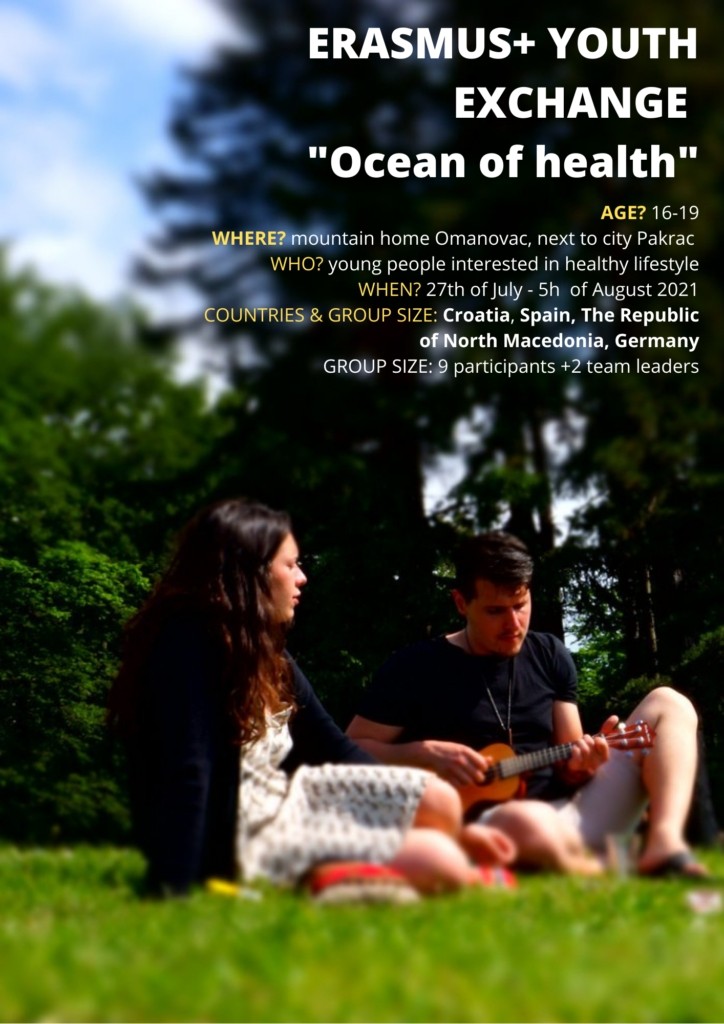 Planinarski dom Omanovac biti će mjesto održavanja i druge razmjene mladih naziva OCEAN OF HEALTH koja će se održati odmah nakon završetka razmjene mladih BORA-BORA, i koja će trajati od 27. srpnja do 5. kolovoza. Udruga poziva 9 mladih osoba iz Hrvatske u dobi između 16 i 19 godina koji su zainteresirani učiti o zdravom načinu života, vole boraviti u prirodi, spremni su isprobavati nove stvari i učiti i družiti se s mladima iz 4 različite EU zemlje.